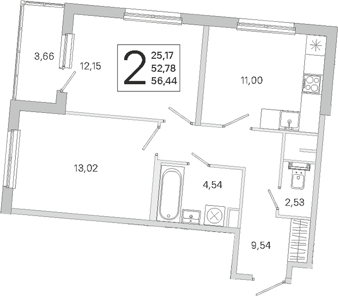 - S общая: 52.78 м2