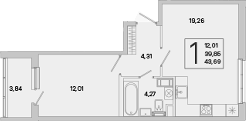 - Комнат: 1-к.кв