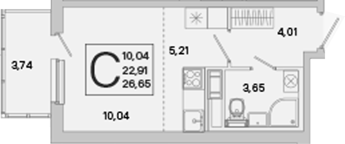 - S общая: 22.91 м2