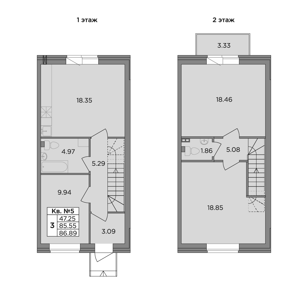 - S общая: 85.89 м2