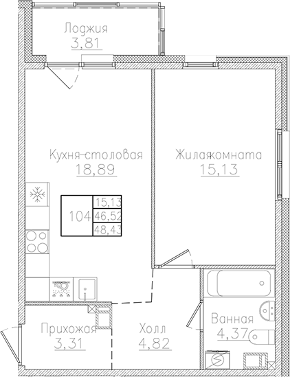 • S общая: 46.52 м2