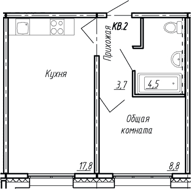 - Комнат: 2Е-к.кв