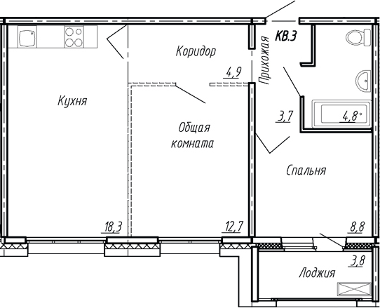 - Комнат: 3Е-к.кв
