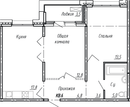 - S общая: 57.5 м2