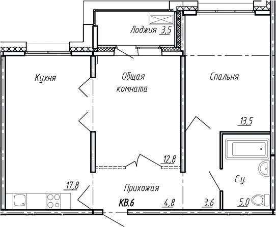 - S общая: 57.5 м2