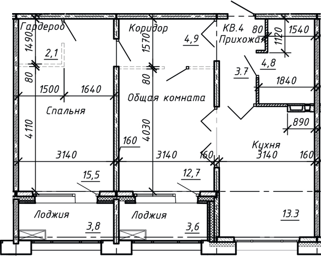 - Комнат: 2-к.кв