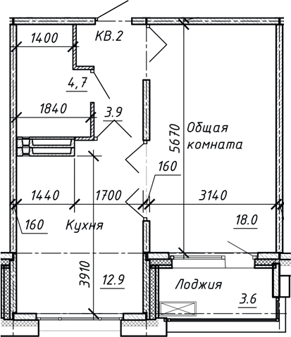 - Комнат: 1-к.кв