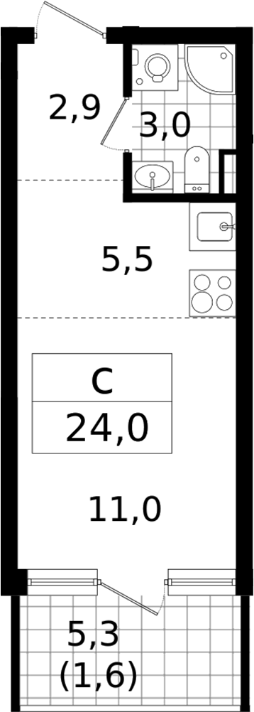 - Комнат: Студия