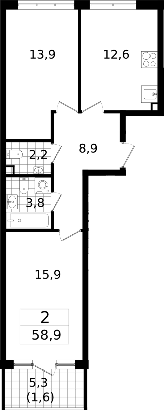 - Комнат: 2-к.кв