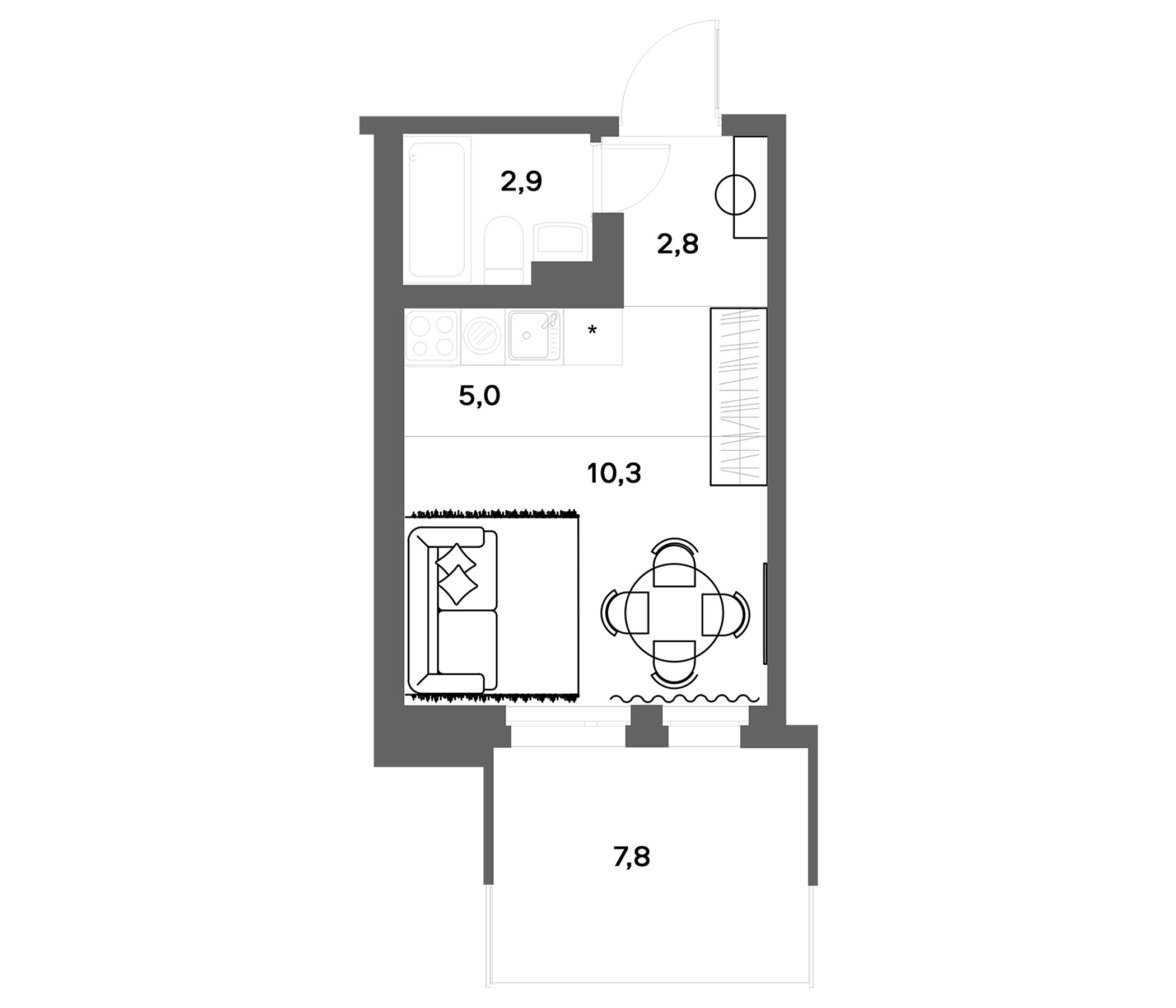 - Комнат: Студия