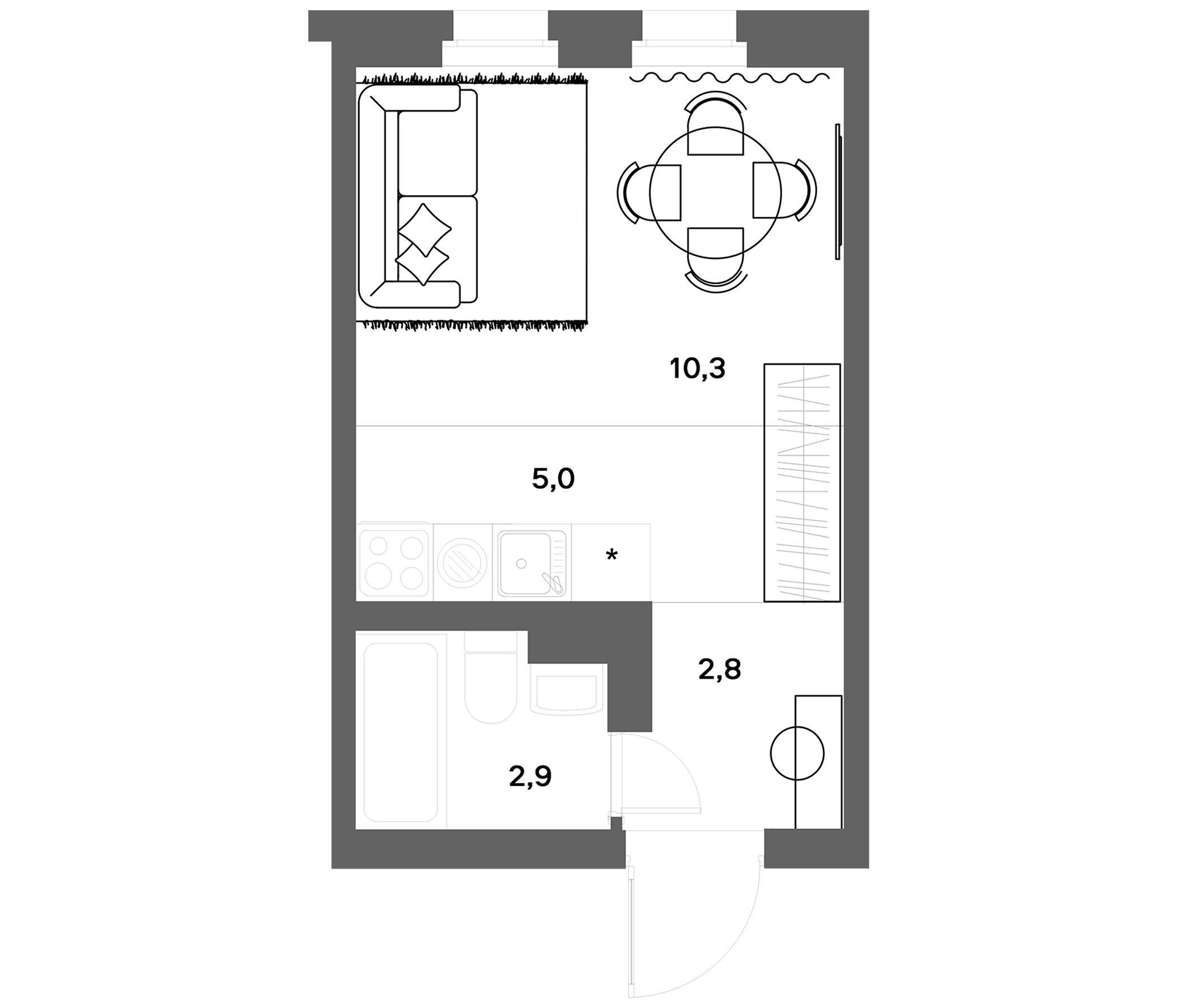 • Комнат: Студия