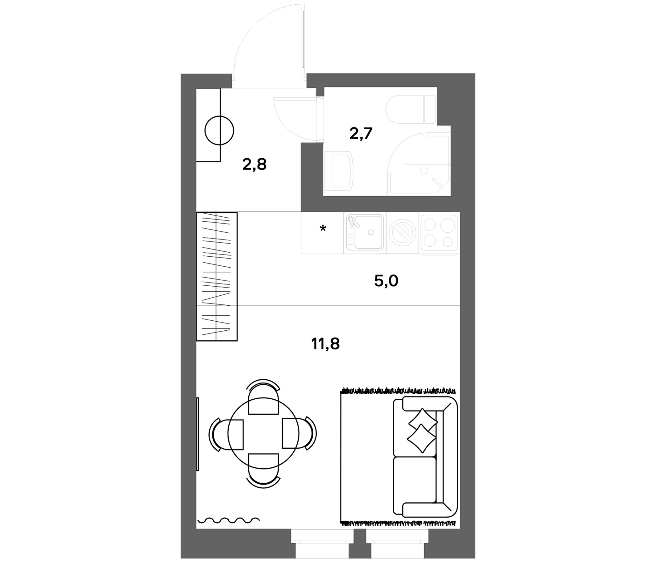 - Комнат: Студия