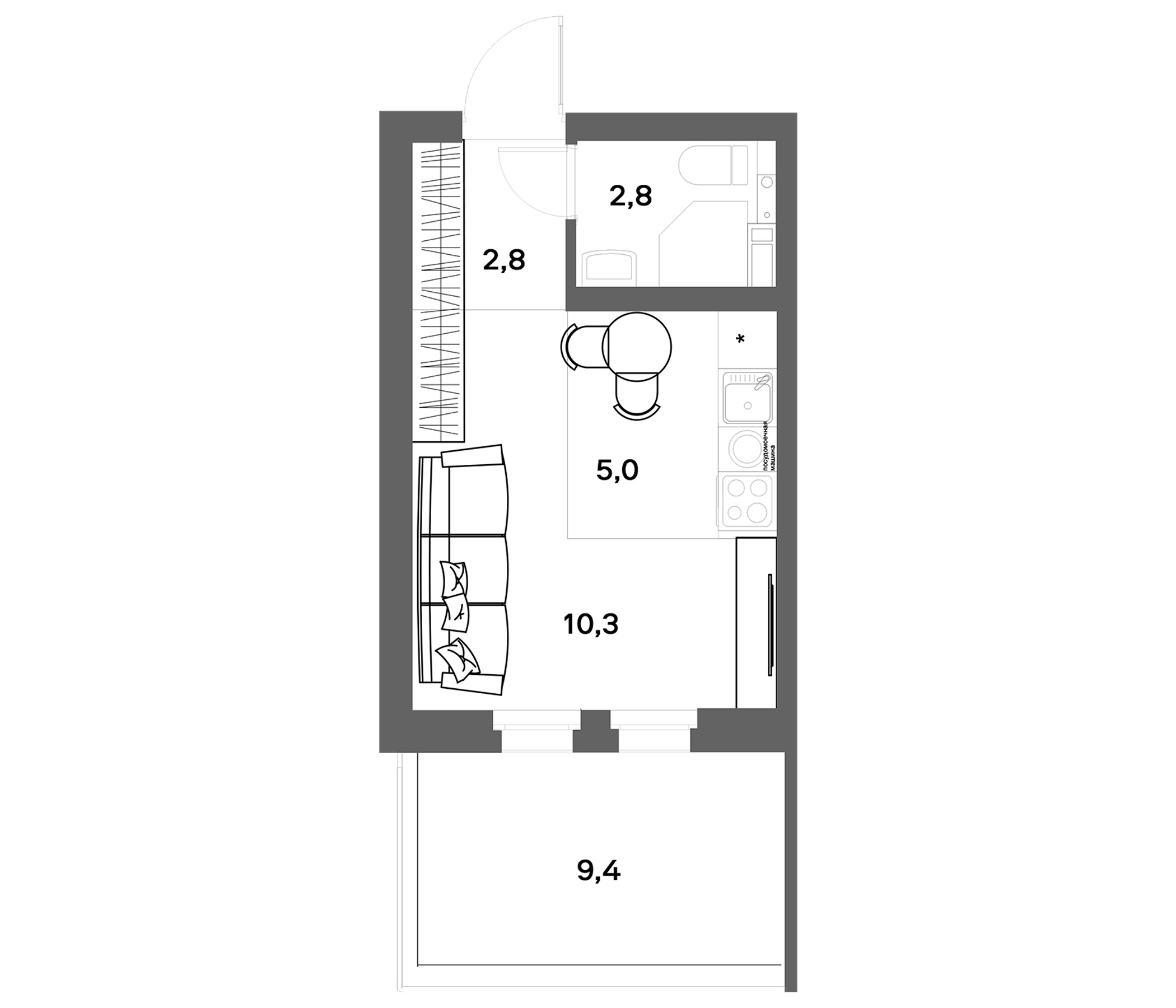 - Комнат: Студия