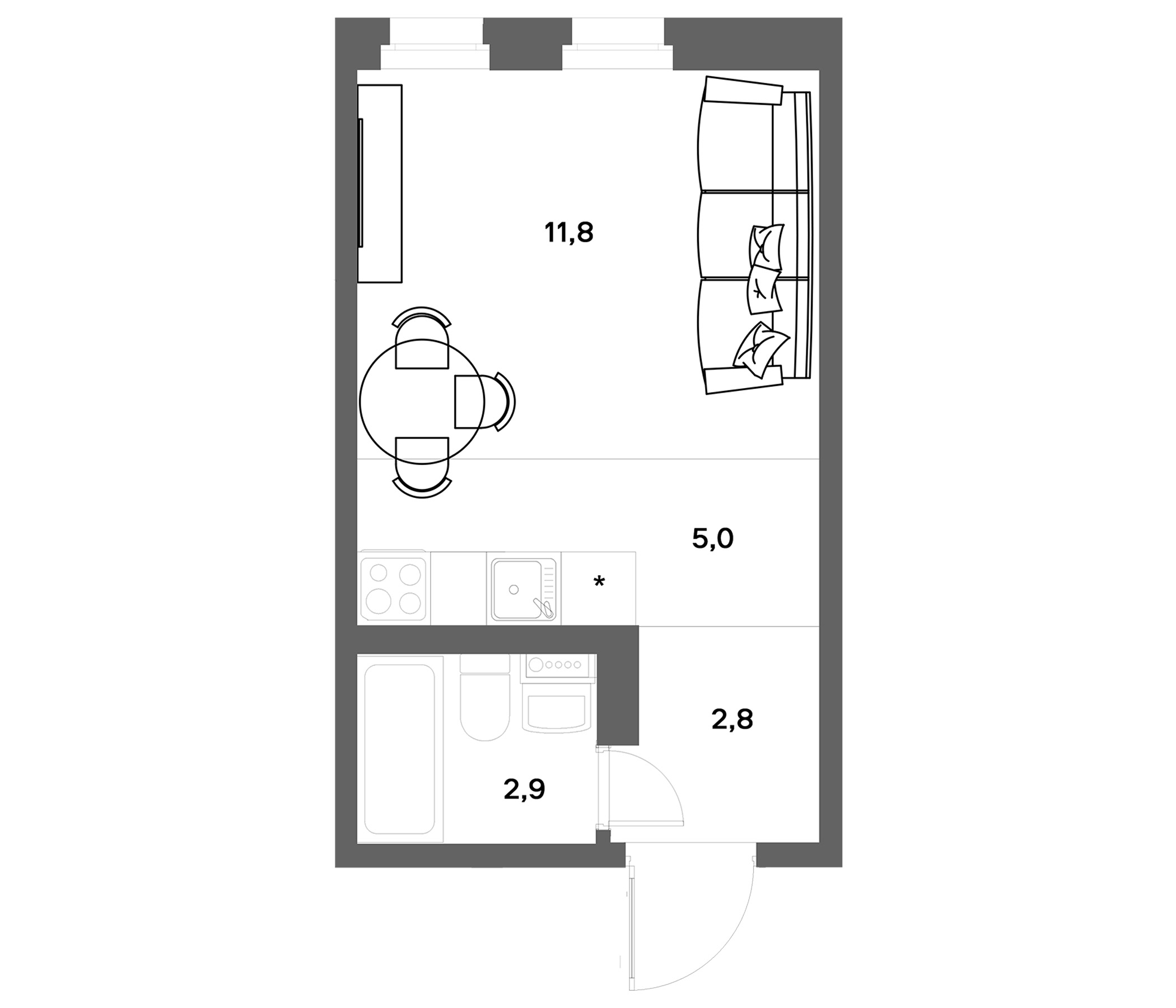 - Комнат: Студия