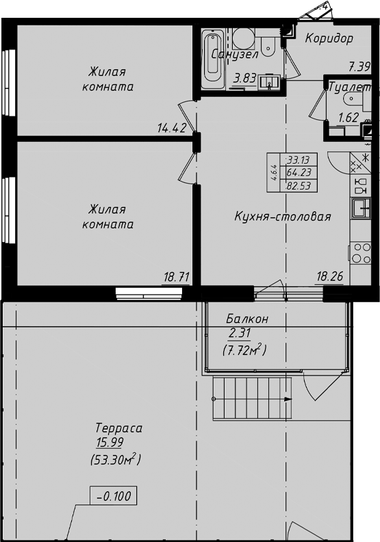 Цена за м2: 229 205₽- Отделка: Подчистовая