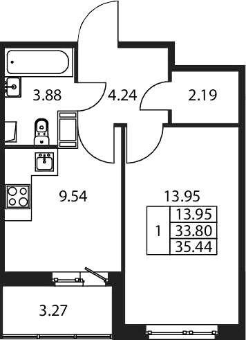 - S общая: 33.8 м2