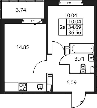 - Комнат: 2Е-к.кв