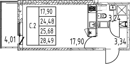 - S общая: 24.48 м2