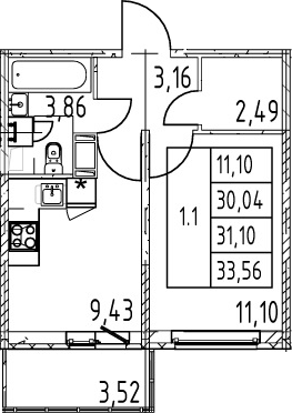 - Комнат: 1-к.кв