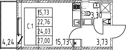 - S общая: 22.76 м2