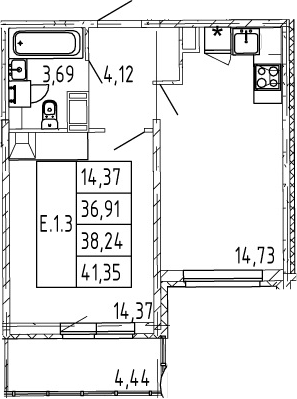 - Комнат: 2Е-к.кв