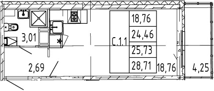 - Комнат: Студия