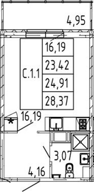 - S общая: 23.1 м2
