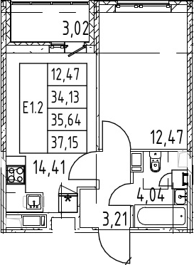 - S общая: 34.13 м2