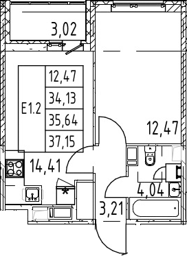 - S общая: 34.13 м2