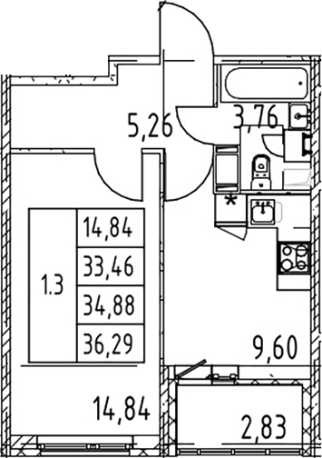 - Комнат: 1-к.кв