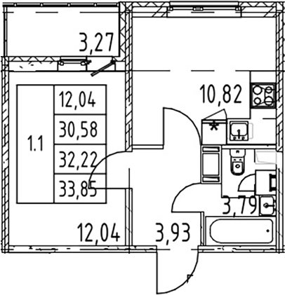 - Комнат: 1-к.кв