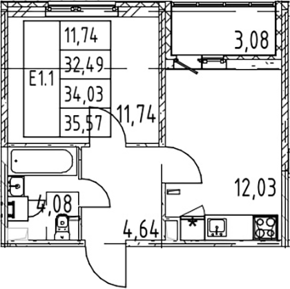 - S общая: 32.49 м2