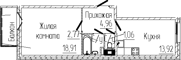 - Комнат: 1-к.кв