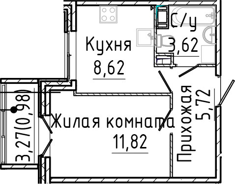 - Комнат: 1-к.кв