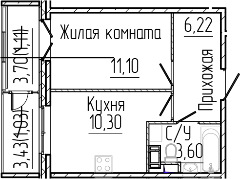 - Комнат: 1-к.кв
