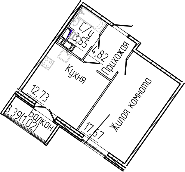 - Комнат: 1-к.кв