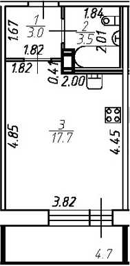 - S общая: 24.2 м2