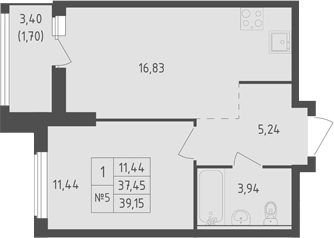 - S общая: 37.45 м2