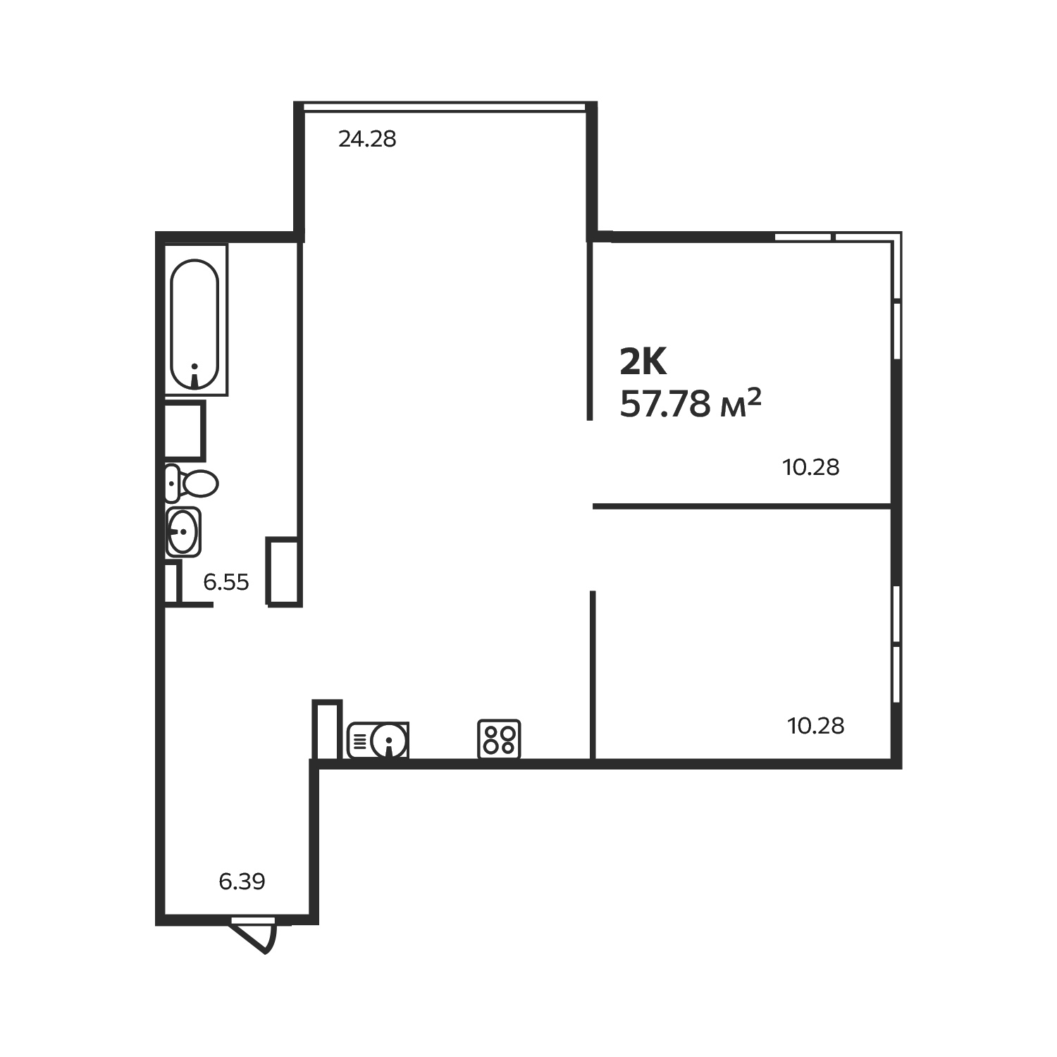 - S общая: 57.78 м2