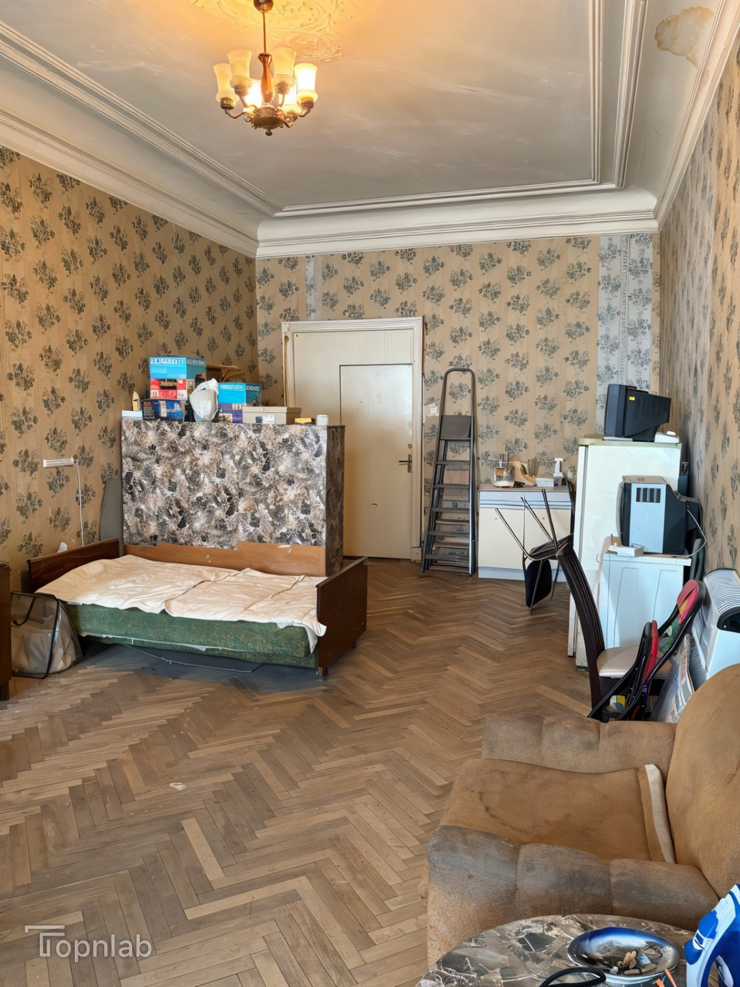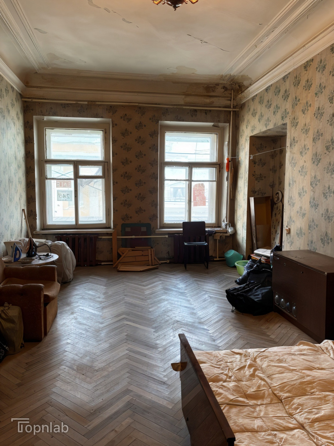 Комната квадратная, два окна выходят на Загородный проспект, высокие потолки-3,45! Отличное предложение для инвестиций и сдачи в аренду. Почти все соседи сдают свои комнаты.