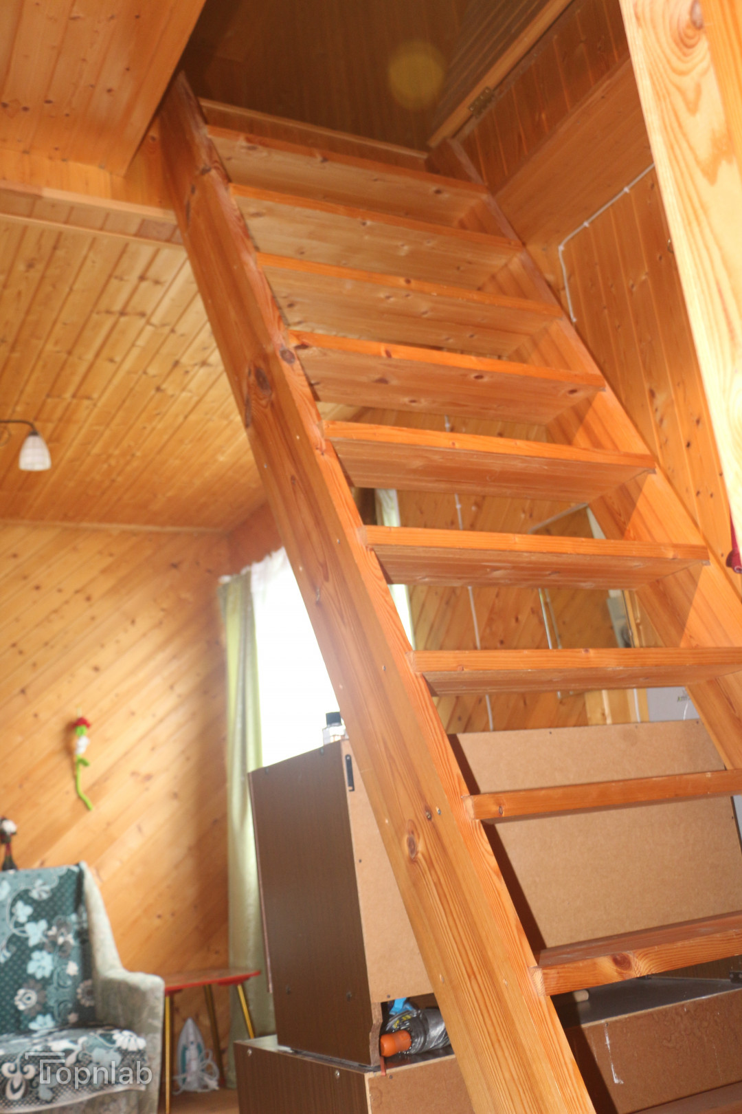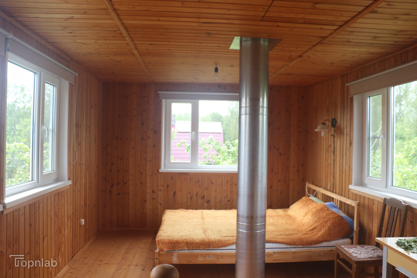 В мансардном этаже оборудована спальня с современными стеклопакетами , из окон которой открывается вид на весь участок.