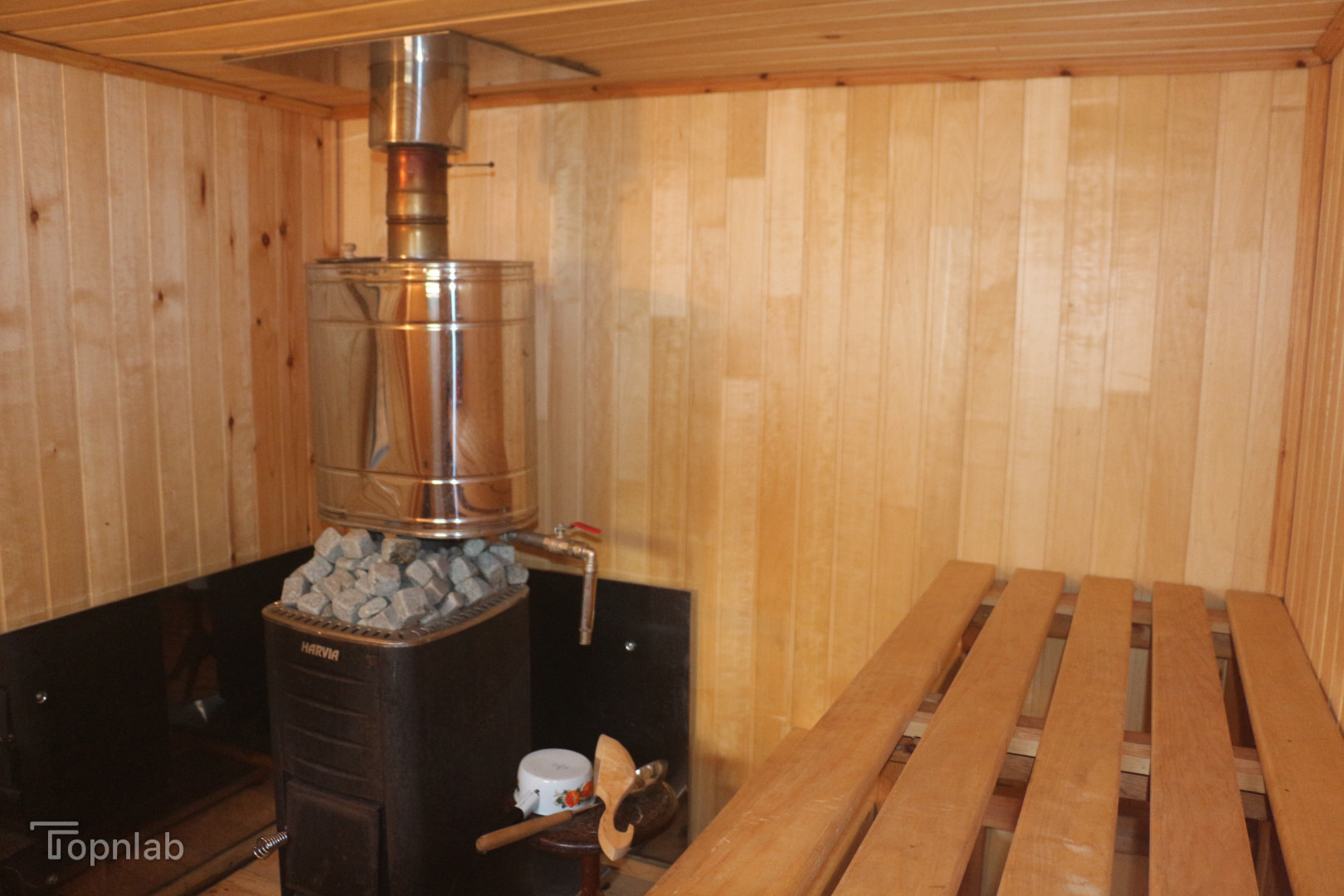 - действующая рубленная из бревна баня с финской дровяной печью Harvia;
