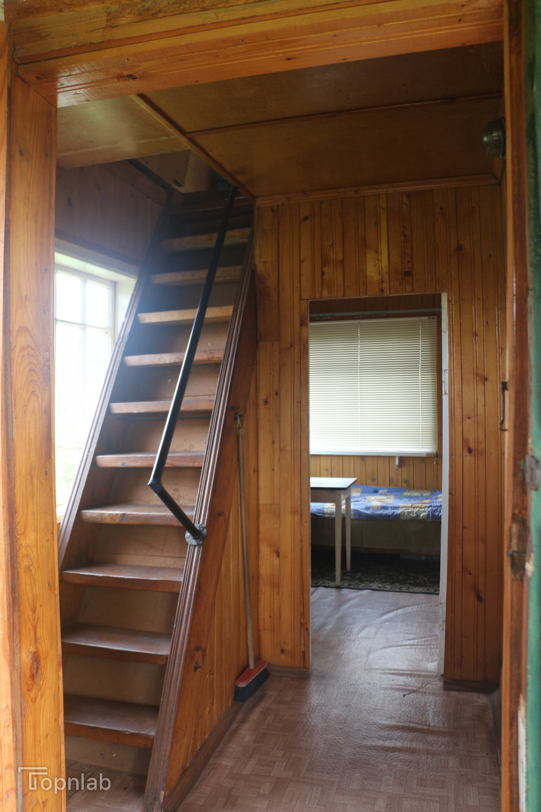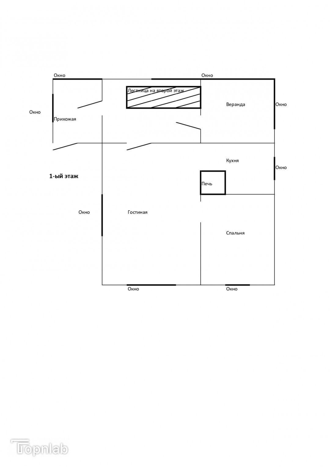Первый этаж состоит из прихожей, летней веранды, кухни-гостиной и спальни.