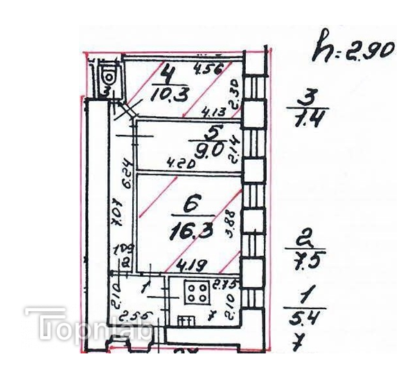 Высота потолков: 2.9 м