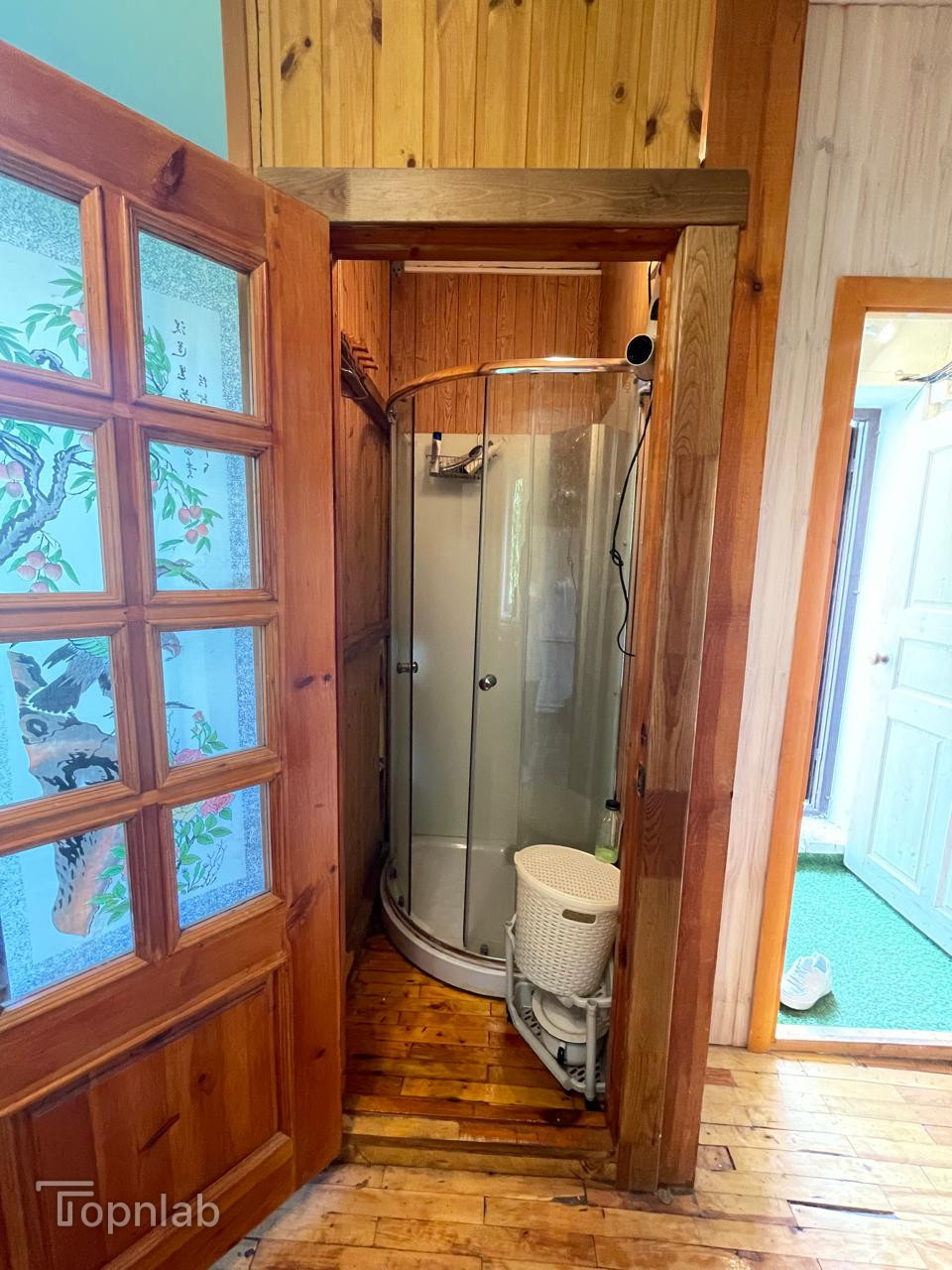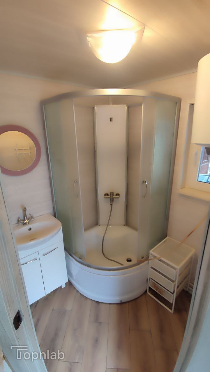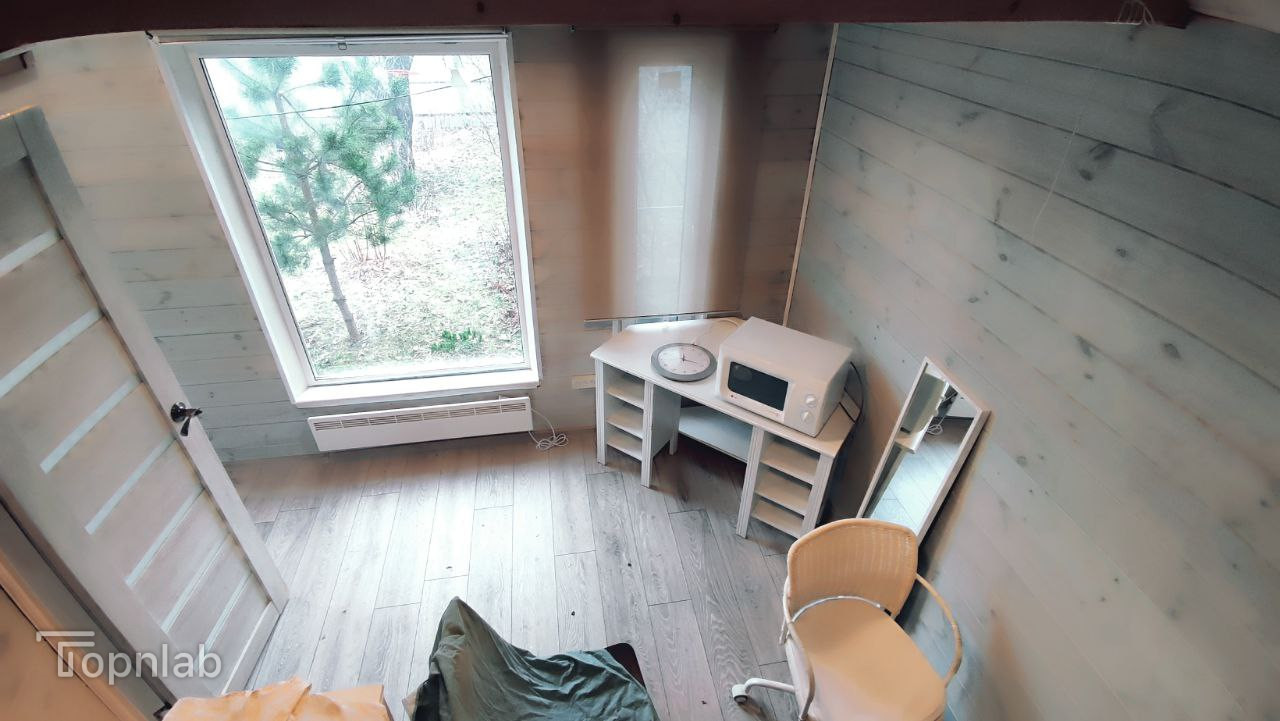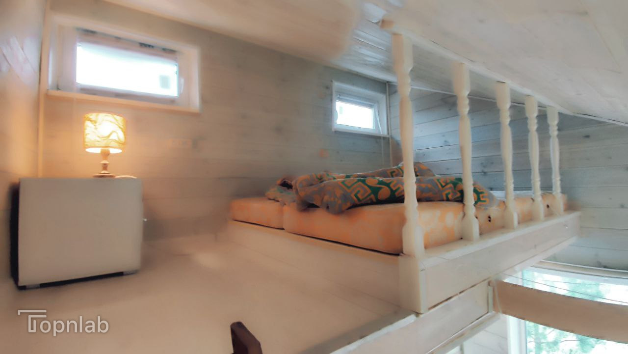 -25 м², построен по индивидуальному проекту с современным двухуровневым европространством. Отличный вариант для гостей, сдачи в аренду или удалённой работы. Оборудован душем. Дом сдаётся в сезон — с мая по октябрь — за 50 000 рублей в месяц и всегда востребован.