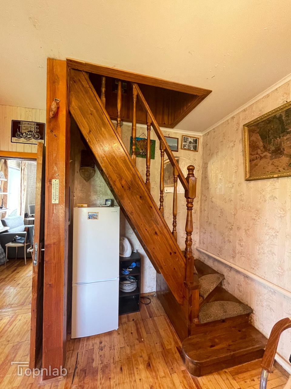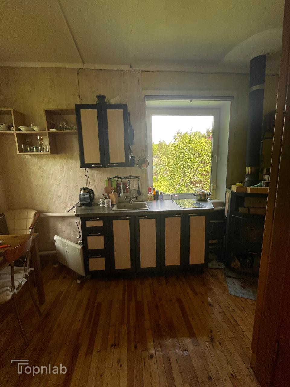 -120 м². На первом этаже гараж, который можно использовать под мастерскую или хоз. блок, на втором этаже большая гостиная, просторная кухня-столовая и мансардный этаж с небольшой террасой. Все удобства, паровое отопление. Конструктивно подходит для постоянного проживания. Требует наружной отделки.